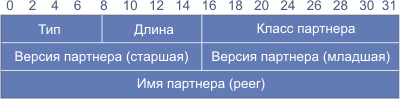 Поле тип содержит код 2, поле длина определяет размер заголовка, если длина=8, имя партнера отсутствует. Поле класс партнера идентифицирует тип системы отправителя (см. таблицу 4.2.3.1). Таблица возможных значений поля класс партнера приведена ниже. Поле имя партнера может иметь до 32 октетов.