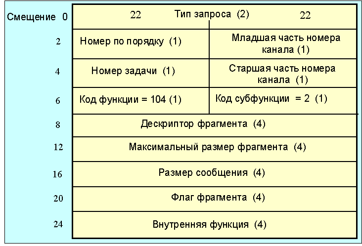 Запрос nds в режиме ping позволяет запросить сервер о поддержке им операции с кодом 104. Если сервер может выполнить эту операцию, он посылает позитивный отклик, который содержит имя дерева каталога и его глубину. При посылке фрагментированного nds запроса присылается фрагментированный отклик. При обновлении секции каталога netware передает последовательность nds-фрагментов, содержащих изменения данной секции. Формат таких пакетов показан на рис. 4.2.1.5.1. В скобках указаны размеры полей в байтах. Поле максимальный размер фрагмента несет в себе максимальное число байт, которое может быть послано в качестве отклика. Код в этом поле соответствует максимуму, поддерживаемому сетевой средой минус 8 (сумма длин поля длины отклика и поля дескриптора фрагмента). Поле флага фрагмента всегда содержит нуль. Поле внутренняя функция хранит в себе код операции для службы каталогов netware. Таблица команд службы каталогов приведена в приложении (10.5) .