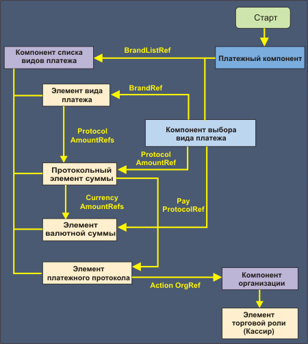 | C ß M | Компонент: Платеж; Организации (продавец и кассир); опционная подпись отклика-предложения, которая подтверждает другие компоненты. |