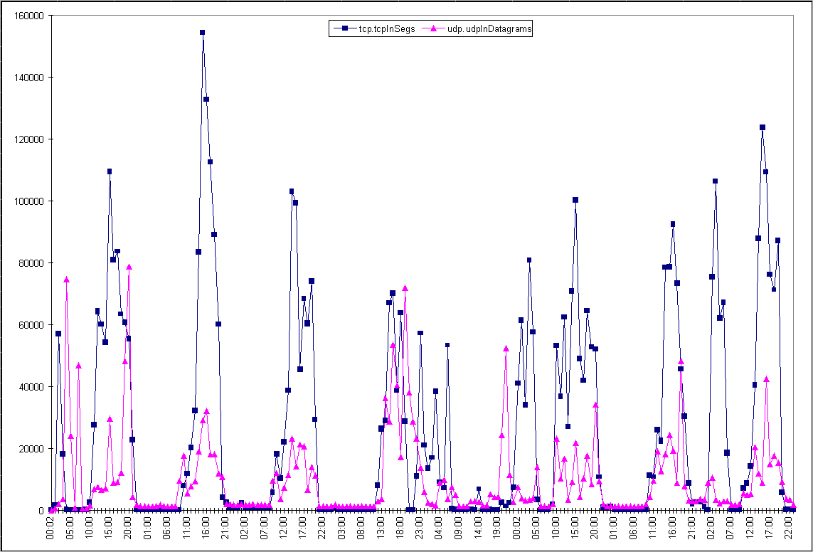 Рис. 4.1.2. Вариации tcpinsegs и udpindatagrams в течение недели