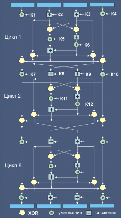 Рис. 6.4.7.1. Схема реализации алгоритма шифрования IDEA