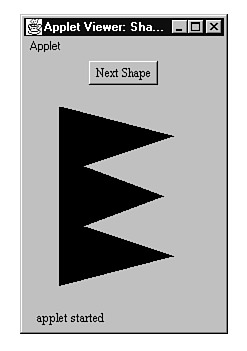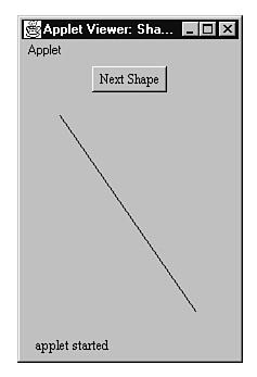 To run ShapeApplet, use the HTML document shown in Listing 16.2, except change all occurrences of RectApplet to ShapeApplet. When you run the applet with Appletviewer, you see the window shown in Figure 16.6. To change the shape displayed in the applet's canvas, click the Next Shape button.