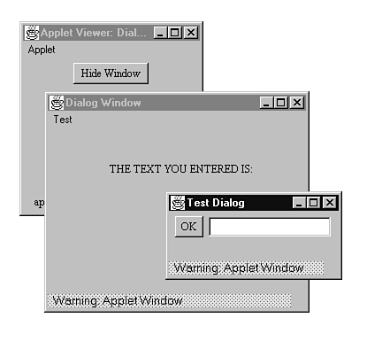 Figure 24.1 : This is DialogApplet running under Appletviewer.