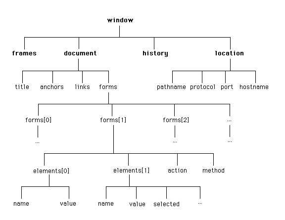 Figure 4.6 : Anchors, links, forms, and form elements are represented as objects in JScript.