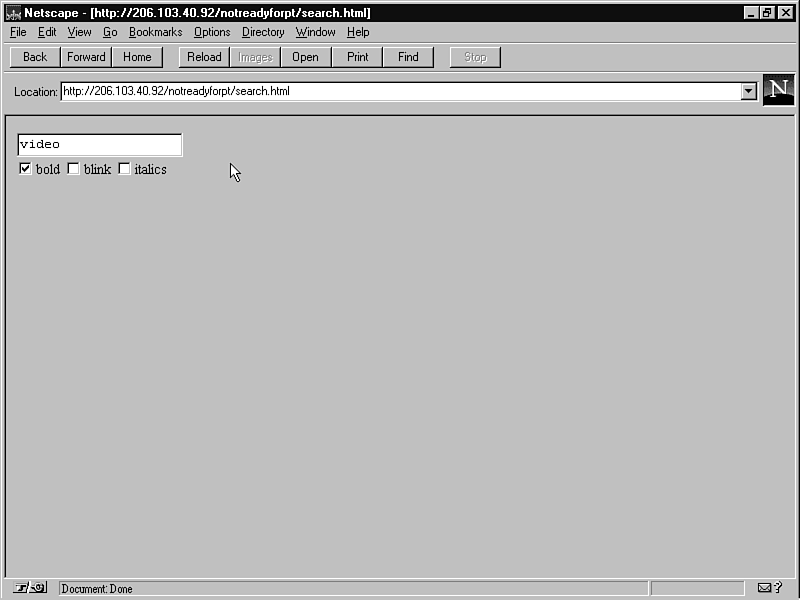 When a user enters a word or phrase into this form and presses Return, he hopes that the script will return the information that he's looking for. The only way that you can be sure to do this for the user is to make sure that you check every file on your site for that term, and fortunately, Perl provides some great tools that do just that. Listing 5.1 runs through a script that processes the form shown in figure 5.1.