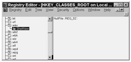 When the tree is expanded to show the contents of the .WAV key, the ShellNew