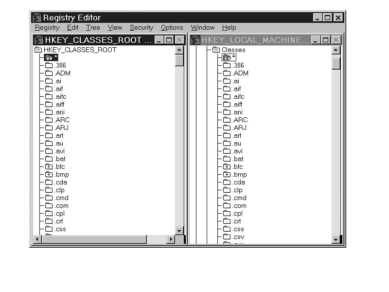 NT and Windows 95, HKEY_CLASSES_ROOT is the same as HKEY_LOCAL_MACHINE\Software\Classes.