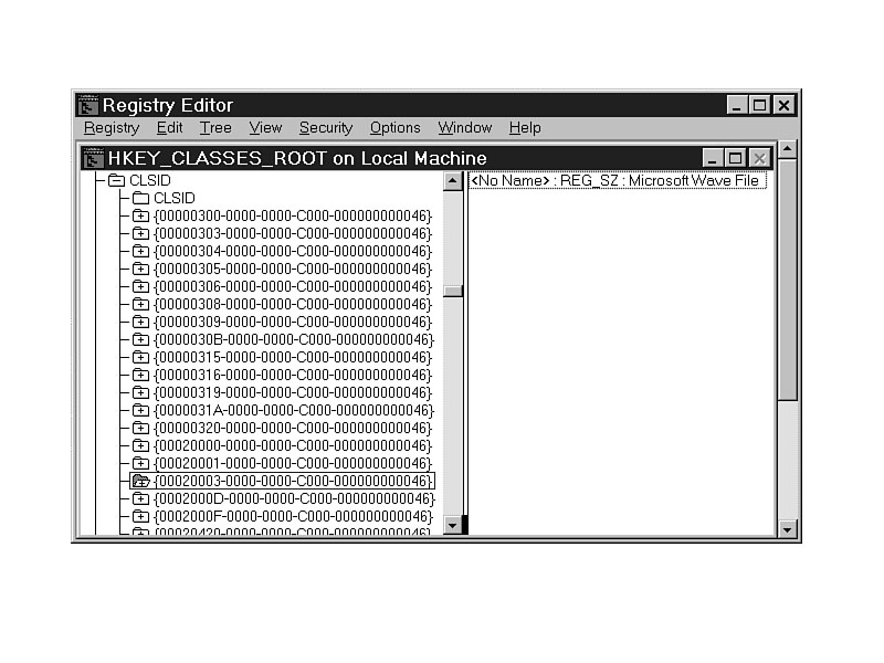 In HKEY_CLASSES_ROOT, the extension for a wave sound is listed as .WAV.