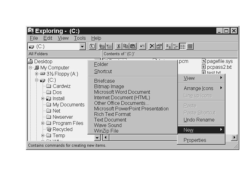 C.6. The choices above the line (Folder and Shortcut) are set by Explorer and cannot