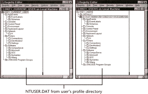 and the currently logged-on user in HKEY_USERS are both mapped from NTUSER.DAT.