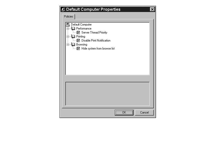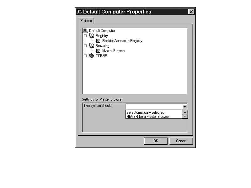 Every time you exit Windows, you can set it to the same option with the Shutdown setting in the System Policy Editor. The ITEMLIST entry in Listing J.1 produces the lists shown at the bottom of Figure J.4. The CLASS MACHINE settings in INTERFACE.ADM create the settings for the computer, as shown in Figure J.5. Figure J.3. Offset the wallpaper for better viewing. Figure J.4. Set the shut-down settings for consistency. Figure J.5. Computer-based settings allow system customization.