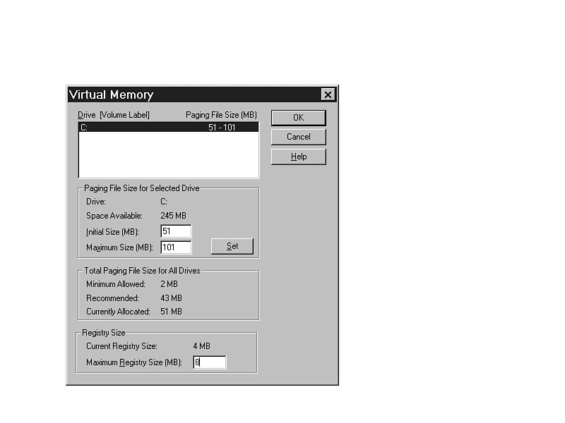 Performance tab, and set the Maximum Registry Size as shown in Figure 3.4. If the