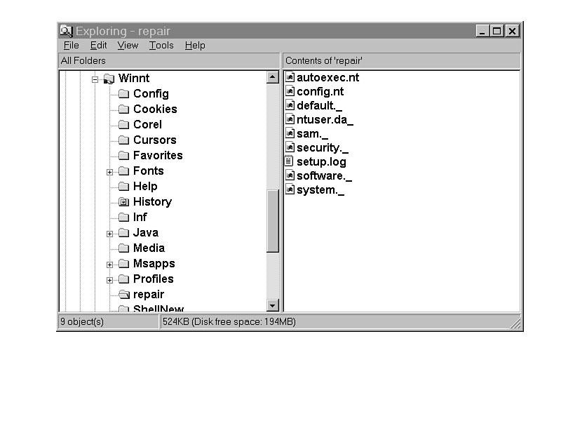 As Figure 4.2 illustrates, not all Registry files are saved, so running the Repair