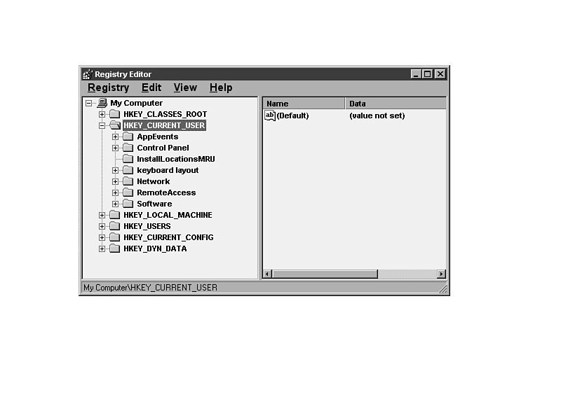 Registry. Figure 25.1 shows the keys in HKEY_CURRENT_USER in REGEDIT.EXE.