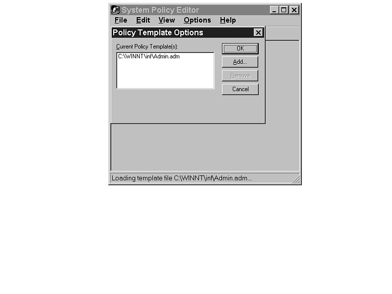 Using Template Files for Windows 95 with System Policy EditorThe template files for Windows NT and Windows 95 have exactly the same format and syntax. The main differences are based on the differences in the Registry. Windows 95 has some entries that NT doesn't, and the number of entries found in NT that are not in Windows 95 is astounding. Because of the similarities between the two, and the common Explorer interface, there are also many common entries. The Win95 System Policy Editor allows only one template file, ADMIN.ADM. If you ever want to add to the template, you need to edit that file. Figure 33.1 illustrates the fact that the files are compatible, and ADMIN.ADM (without modifications) will load, and could even be used, in the System Policy Editor for Windows NT. Figure 33.1. ADMIN.ADM will also load into the Windows NT System Policy Editor.