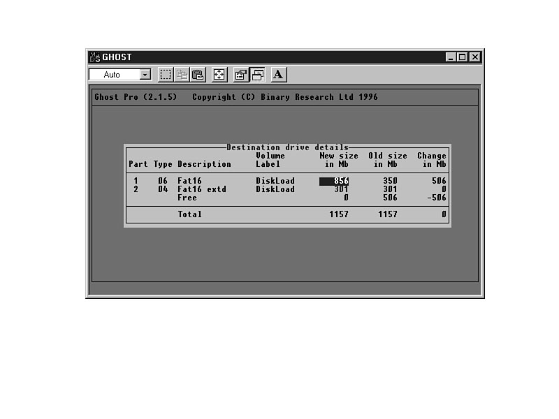 - 8. Select the new partition size, and press Enter. GHOST will re-allocate