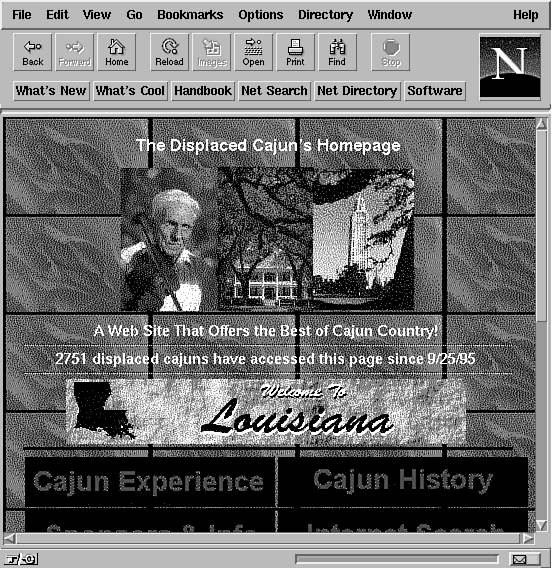 The Displaced Cajun Pages at http://www.webcom.com/dp-cajun/, shown in Figure 1.1, have great content. This site entertains users with information about Cajun food, music, and culture. If users have any interest in things Cajun, they will tour their way through the site.