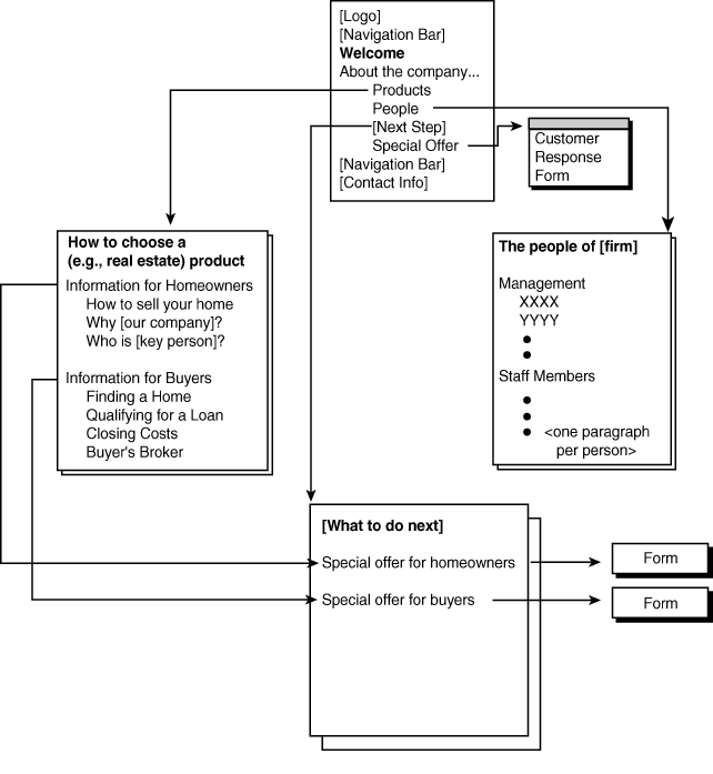 To help clients visualize the recommended site, the Webmaster can use presentation tools to prepare a treatment or storyboard of each page. Usually, the first graphic should show a high-level view of the site: where is the home page and what can the visitor access from there? How many "layers" are there to the site?