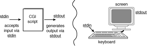 Figure 19.1: The CGI script reads data from an input stream (stdin), and writes out to stdout.