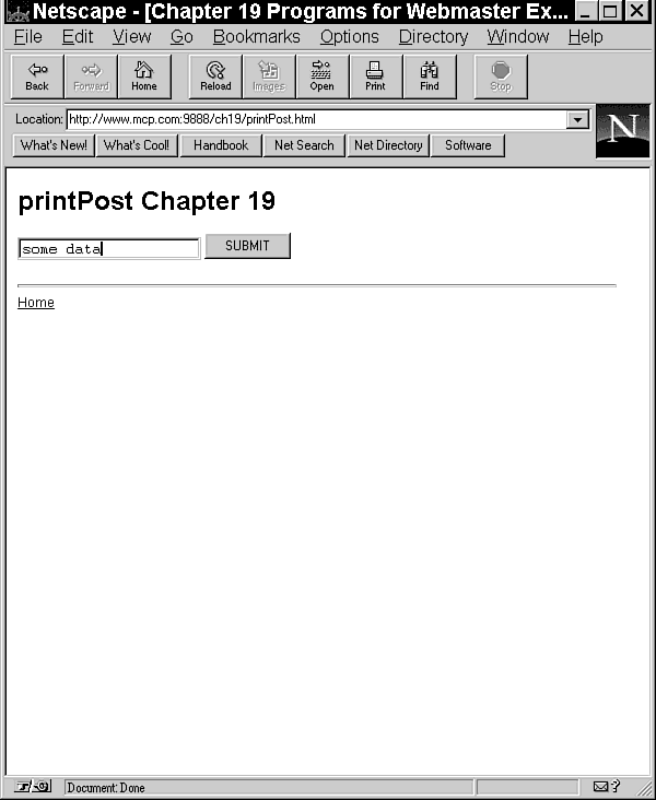 At any rate, she deftly writes a CGI script to handle the data (see Listing 19.9).