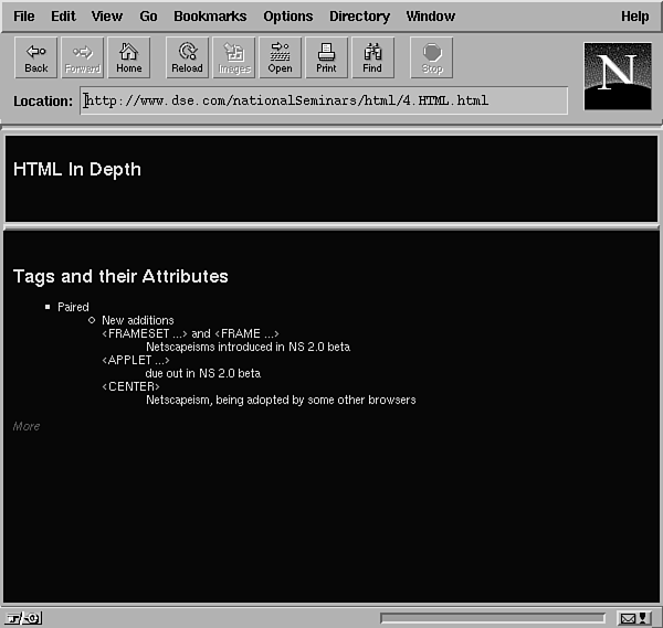 The following discussion is adapted from Mike Meyer's original paper on Netscape's extensions to HTML, available at http://www.phone.net:80/home/mwm/netscape/. |