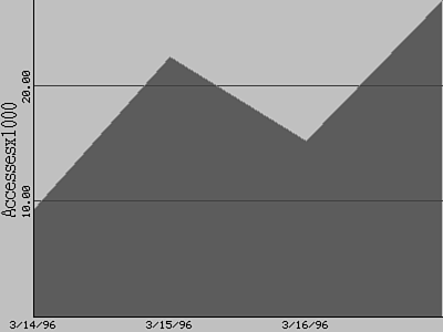 This Perl script looks at the data a bit differently than many of the programs and scripts described earlier. It follows many of the same statistics as other analyzers but makes heavy use of graphical output. The Uppsala team analyzed AccessWatch, although not as part of its major study. The team found AccessWatch to have a throughput well under one percent of GetStats-around 48 lines per second, compared to GetStat's 21,000 lines per second. See the sample output in Figures 42.7 and 42.8. AccessWatch is available at http://www.eg.bucknell.edu/~d/.