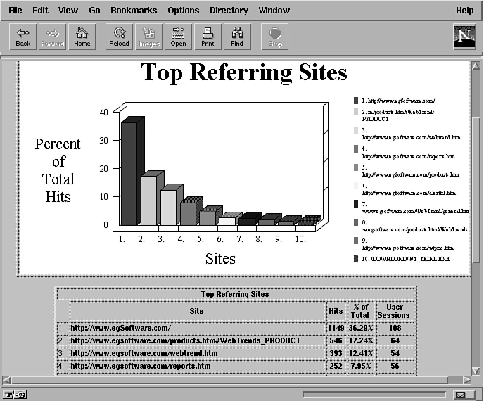 Like most programs described here, this program handles input in the Common Log Format. It's described at http://www.egsoftware.com/webtrend.html. Figure 42.6 shows sample output.