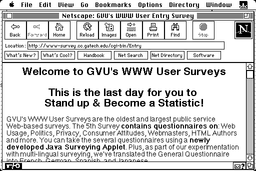 A detailed discussion of GVU's software approach is available at http://www.cc. gatech.edu/gvu/user_surveys/survey-09-1994/html-paper/survey_2_paper. html#method.