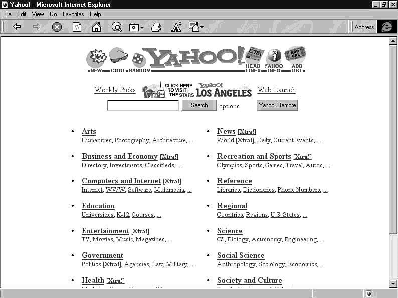 All search engines, such as Yahoo!, shown in figure 23.1, rely on a similar interface-you fill out a form and submit it. What happens behind the scenes is also pretty standard.