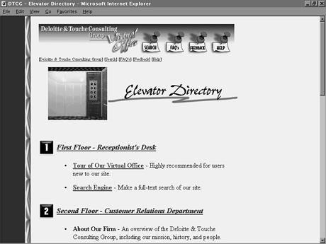 Providing Multiple Links within an HTML PageThe previous section examined the operation of the HTTP application protocol. This demonstration outlined how a Web client would make use of a separately established TCP connection to download each data object specified within a single HTML page. As previously mentioned, the use of multiple TCP connections between the client and server will reduce the total elapse time required to transport all the data objects specified within the page. However, there is a price to be paid. Each TCP connection requires the additional use of Web server resources, and it is very possible for servers to have difficulty in keeping pace with these requirements. This section outlines some simple HTML page design principles that will help to combat these effects and allow for more efficient use of resources. Figure 21.4 and figure 21.5 provide a comparison of two different Web pages. Figure 21.4 makes use of a number of individual icons to outline its contents. Each icon provides a reference to a URL guiding the user through the site. This approach is in contrast to that contained in figure 21.5. The web page in figure 21.5 uses a single graphic with URLs embedded behind different parts of the graphic to provide a map of the site. Figure 21.4. Figure 21.5. From the Web client's perspective, it is possible not even to notice a difference in download time between each of the pages. This is especially true if the browser has been configured to operate multiple simultaneous TCP connections. Even though the Web page on the right contains a number of individual graphic images, each of those images could be downloaded simultaneously. The main issues relate to the effective use of resources on the Web server. The map approach as indicated in Figure 21.5 indicates how this might be configured. The map would be a single graphic that would embed hyperlinks defined as URLs. This could then be downloaded over a single TCP connection as opposed to the four separate connections required within the icon approach. This allows the Web server to potentially support a larger number of uses for the same amount of available resources. Using a Cache to Reduce DownloadsThe outline specification of HTTP within the informational RFC1945 introduces the idea of a response chain providing a link between Web server and client. The RFC indicates that there may be a number of intermediate devices upon this response chain which will act as forwarders of any messages. It is possible for any intermediary devices to act as a cache--the benefits being both a greatly reduced response time and the preservation of available bandwidth within the Internet. Figure 21.6 illustrates how this might occur. It outlines that the communication path between the Web server and client is effectively shortened with the use of a cache on an intermediate server. The intermediate server is able to return requested web pages to the client if those pages exist within its cache. In order to ensure that up-to-date information is returned, the client will send a conditional GET request. Figure 21.6. The conditional GET request is made through the use of message request headers available within version 1.0 of HTTP. Listing 21.3 provides an example of how such requests would be structured. Listing 21.3. Making a conditional GET request.workstation> telnet www.dttus.com 80